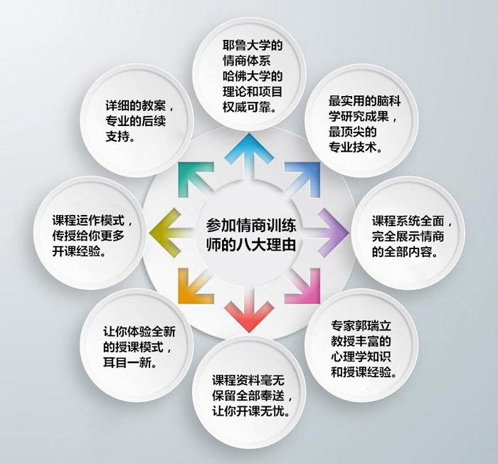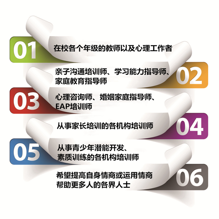 带你走上情商的自我提升之路,并能帮助青少年及成人进行关于情商的系统培训,能为教师、学生、家长及更多人群开设专业的“情商训练班”。尤其是能够开设: