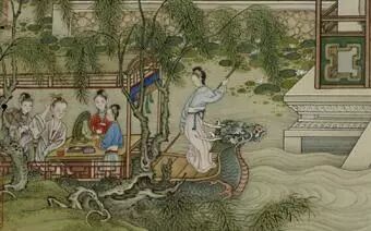 这首诗是说:金銮宝殿建在前面,后面是重重叠叠的紫色楼阁。金铜仙人捧着承露盘承接甘露,盘中有朵玉芙蓉。太平盛世,天子选择吉日举行祭天仪式,六条龙驾着天子銮舆,光华灿烂。